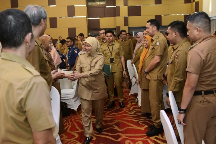 Kedatangannya disambut hangat oleh jajaran kepala dinas dan perangkat daerah lainnya.