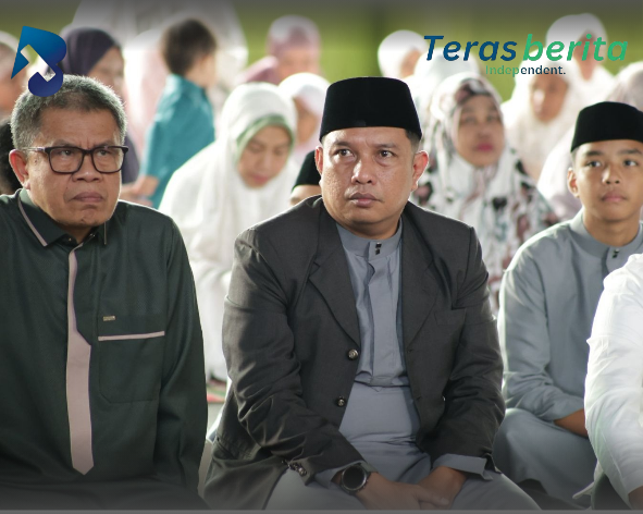 Terasberita-Makassar. Sekretaris DPRD Kota Makassar, A. Rahmat Mappatoba, bersama Ibu Ketua Dharma Wanita Persatuan (DWP) Sekretariat DPRD melaksanakan Sholat Idul Fitri di lapangan tenis kantor lama DPRD Kota Makassar.