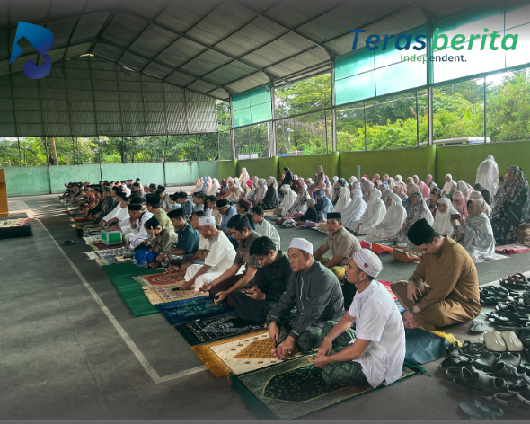 Pelaksanaan Sholat Idul Fitri berlangsung khidmat dan diikuti oleh masyarakat sekitar kantor eks DPRD yang turut hadir memadati lokasi untuk menunaikan ibadah bersama.